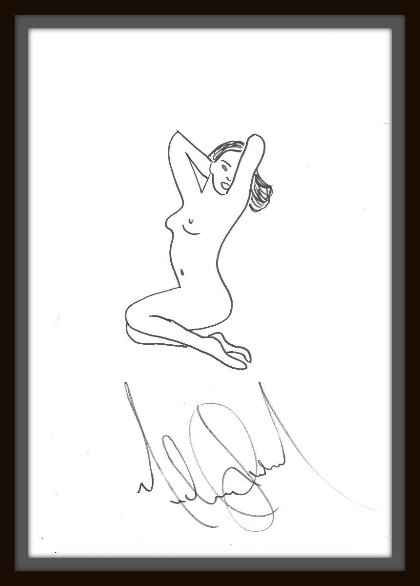 A drawing of a naked woman in black sharpie in the centre of the page. Signed by Michael Jackson. Professionally mounted and framed in wood. Supplied with coa. The drawing is approximately 14x11 inches.