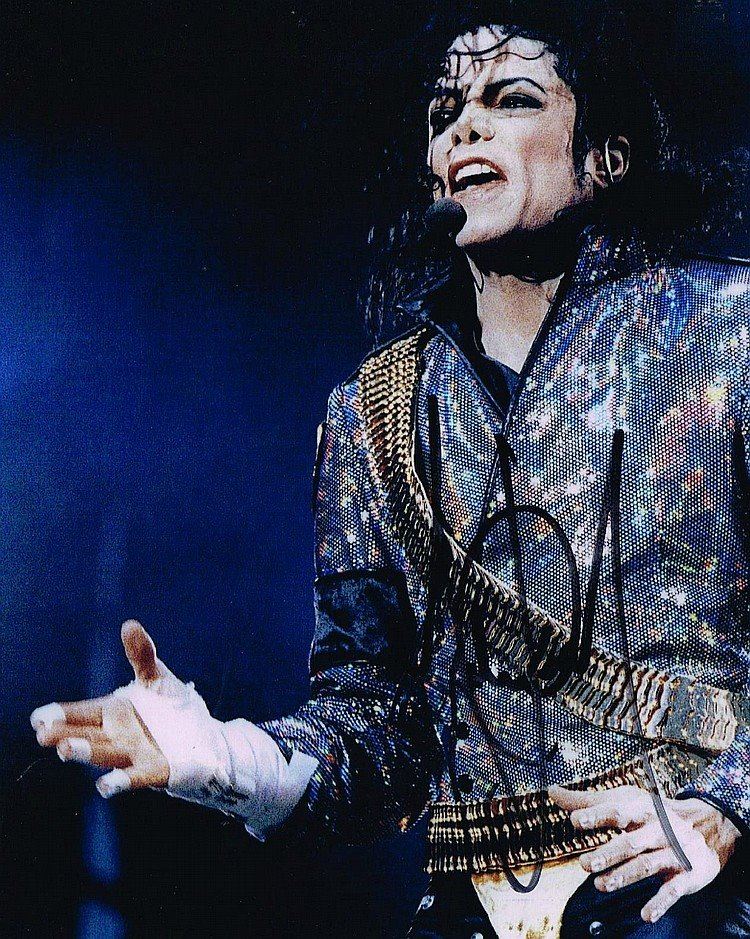 MICHAEL JACKSON: A photo of Michael Jackson performing Jam on stage during his Dangerous tour, signed by Michael Jackson in black sharpie 10x8 inches.