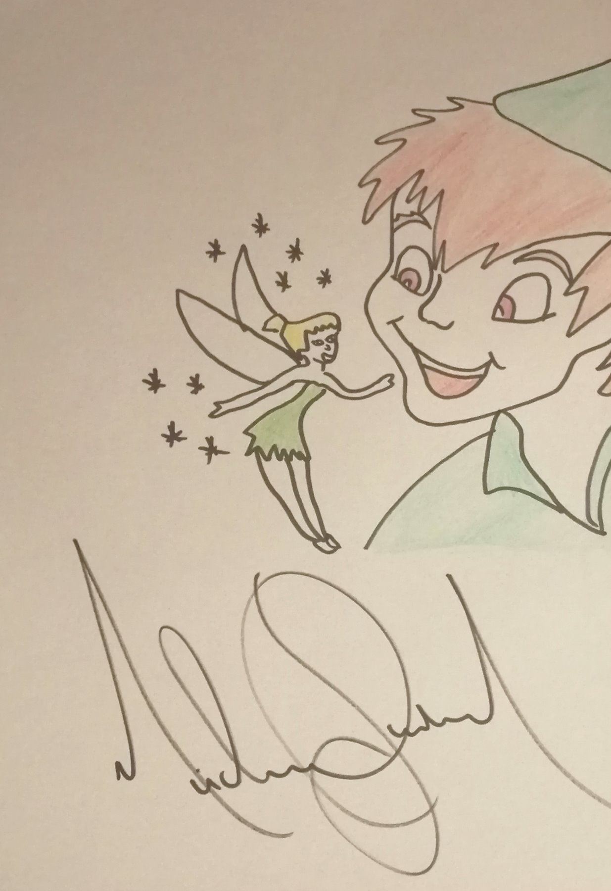 A drawing in crayon of Peter Pan, and Tinker bell by superstar Michael Jackson.