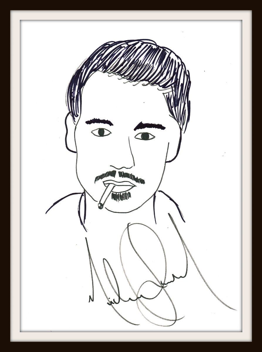 (ca 1990's) Accomplished by Michael Jackson in artists marker on 16.5 x 11 in arists paper leaf depicting head and shoulder portrait of Johnny Depp. Signed below the image. Very good condition. Professionally mounted and framed in wood. Supplied with coa.