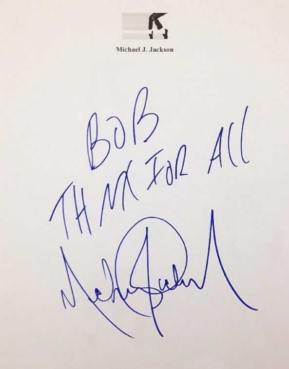 A MICHAEL JACKSON SIGNED NOTE TO MJJ PRODUCTIONS VICE PRESIDENT BOB JONES. INCLUDES A CERTIFICATE OF AUTHENTICITY FROM REAL/ROGER EPPERSON. MEASURING 8 1/2 X 11 INCHES.