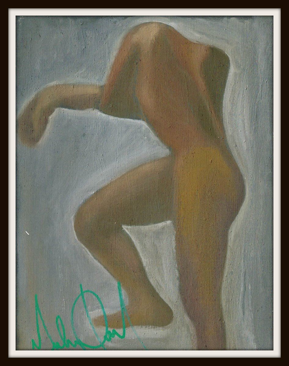 A painting of a headless woman on canvass signed by Michael Jackson. Professionally mounted and framed in wood. Supplied with coa. The painting measures: 12x9 inches.