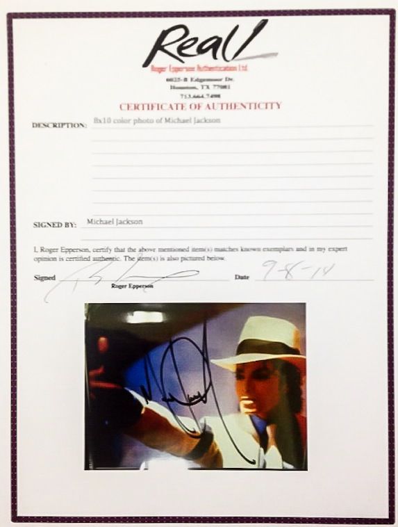 MICHAEL JACKSON SMOOTH CRIMINAL PHOTO.INCLUDES A CERTIFICATE OF AUTHENTICITY FROM REAL/ROGER EPPERSON. MEASURING 8X10 INCHES.