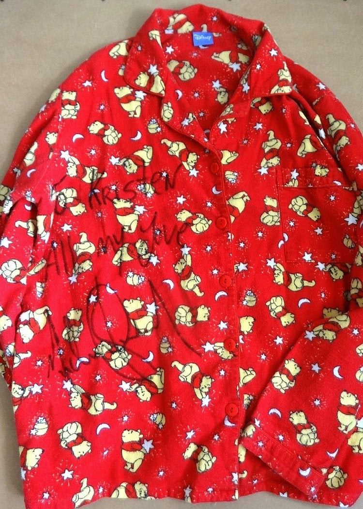 A Disney Winnie the Pooh pair of pyjamas to include the pants and top, with the top signed and inscribed by Michael Jackson in black sharpie.