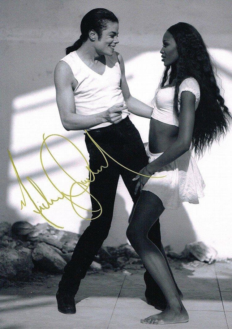 A large photo of Michael Jackson and Naomi Campbell from the 'In the closet' short film. Signed by Michael Jackson in gold coloured sharpie. 16x12 inches. Supplied with coa. Condition: Very good.