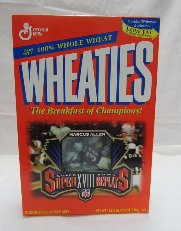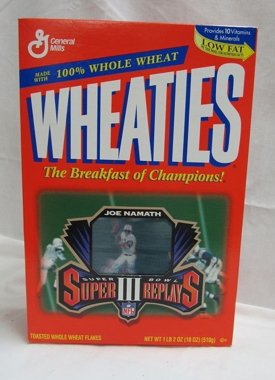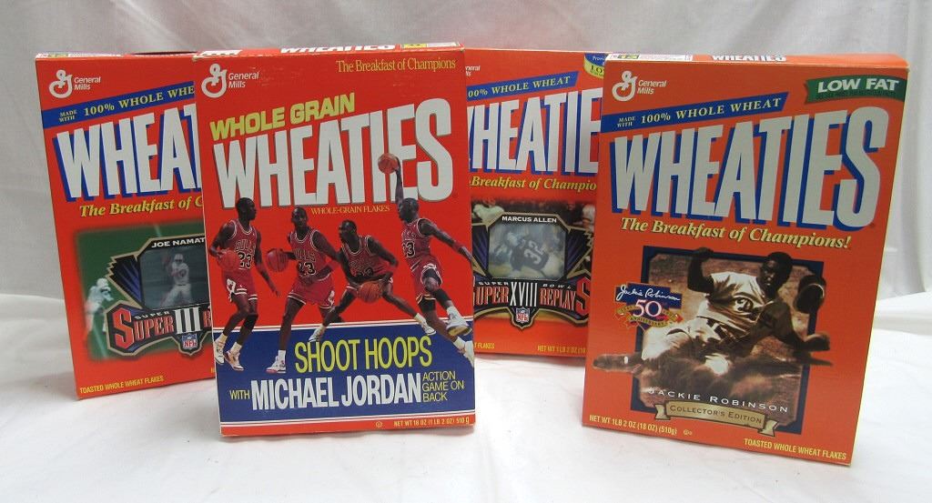 WHEATIES BOX #8; PLUS 3 - WHEATIES BOXES JACKIE ROBINSON, MARCUS ALLEN, JOE NAMATH - ALL BOXES EMPTY, DECENT CONDITION