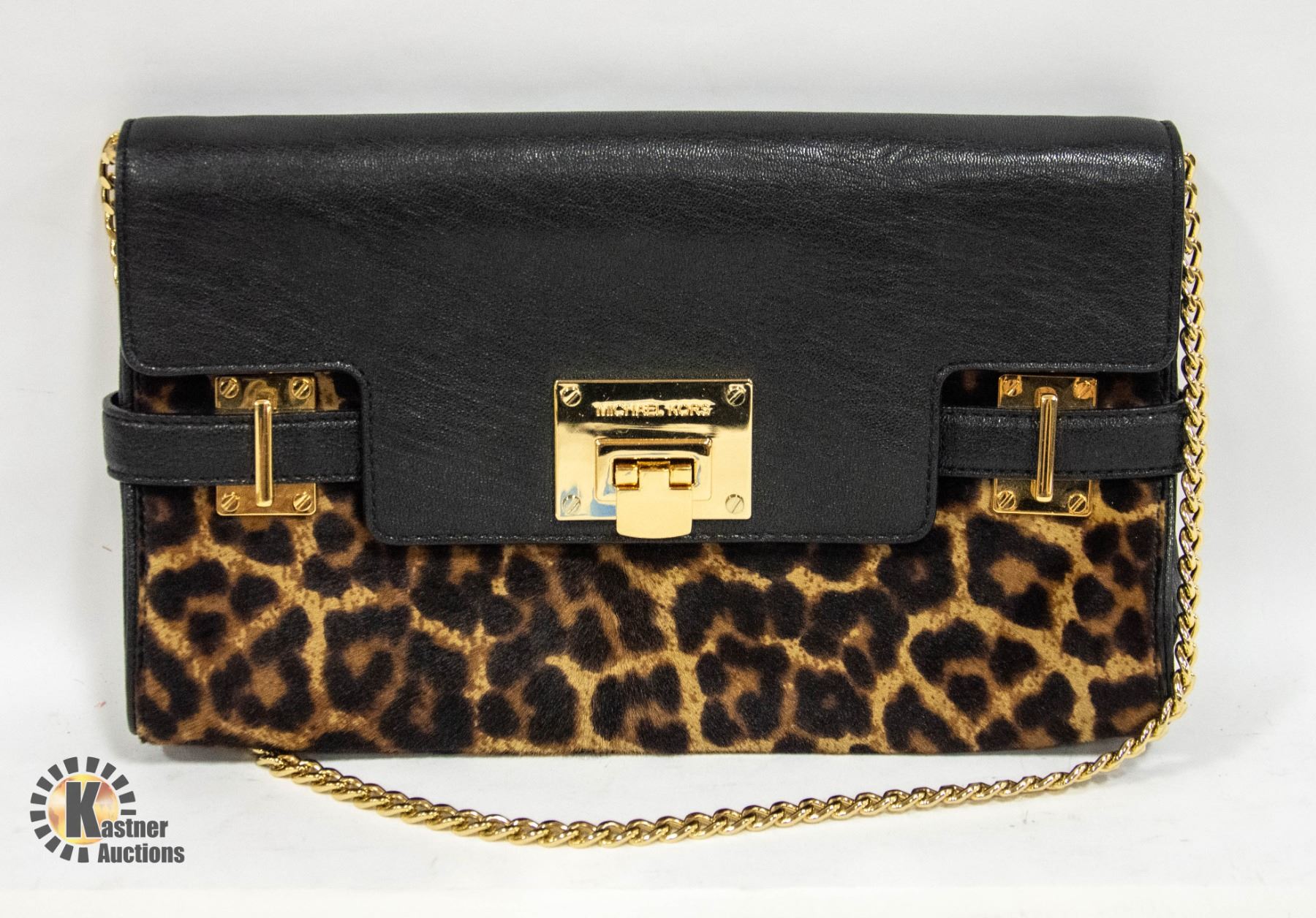 AUTHENTIC, 7" H X 11.5" W, INTERIOR BLACK MK FABRIC & BLACK LEATHER WITH ("MICHAEL", "MICHAEL KORS" BLACK LEATHER LOGO), BUCKLE FLAP, BACK HAS EXTERIOR POCKET, DUAL INTERIOR POCKETS WITH CARD SLOTS, PRISTINE WITH NO TEARS, RIPS, SCUFF MARKS OR STAINS **ALL ITEMS MUST BE REMOVED BY 5PM SATURDAY, DECEMBER 2ND 2023. ALL REMAINING ITEMS WILL BE SUBJECT TO A $6.00 PER DAY STORAGE CHARGE. ANY ITEMS REMAINING AFTER MONDAY, DECEMBER 18TH, 2023 WILL BE CONSIDERED FORFEITED. NO REFUNDS WILL BE ISSUED FOR FORFEITED ITEMS. TO SCHEDULE A PICK UP APPOINTMENT CLICK HERE