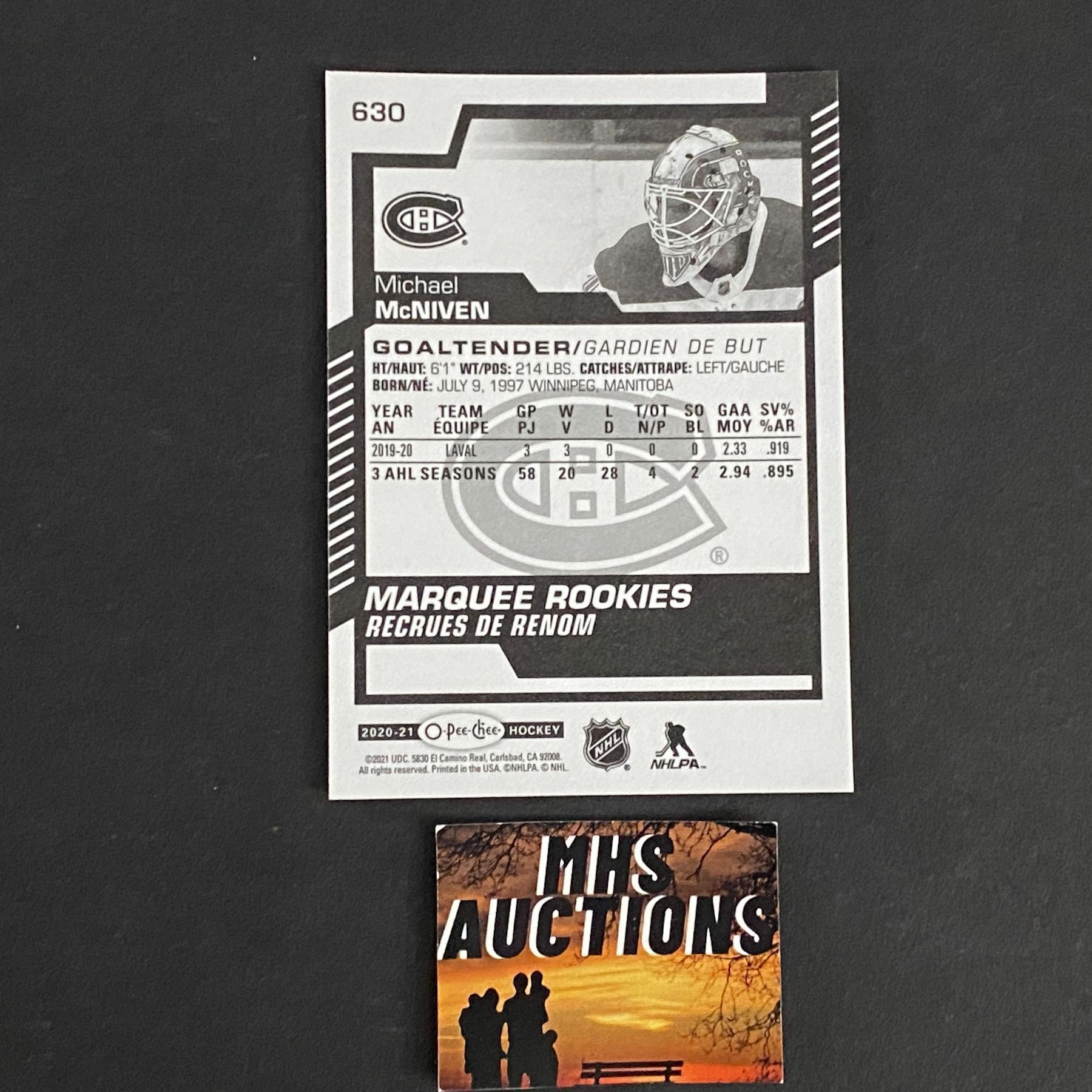 MICHAEL MCNIVEN 2020-21 O PEE CHEE MARQUEE ROOKIE HOCKEY CARD