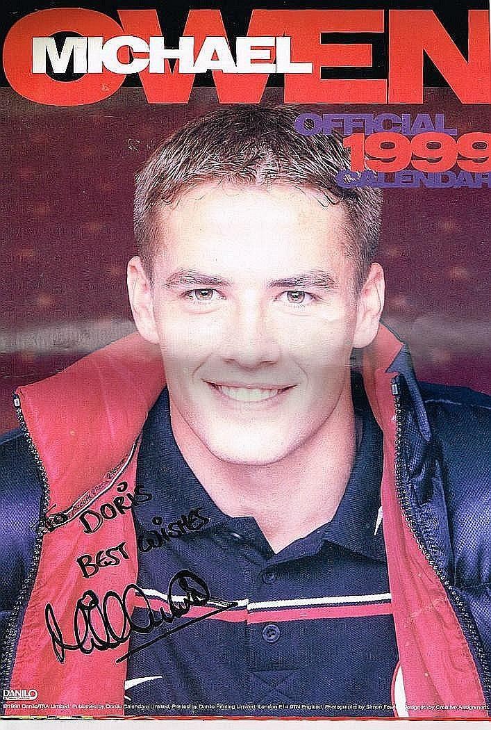 A Michael Owen official 1999 calendar signed 'To Doris Best wishes Michael Owen'