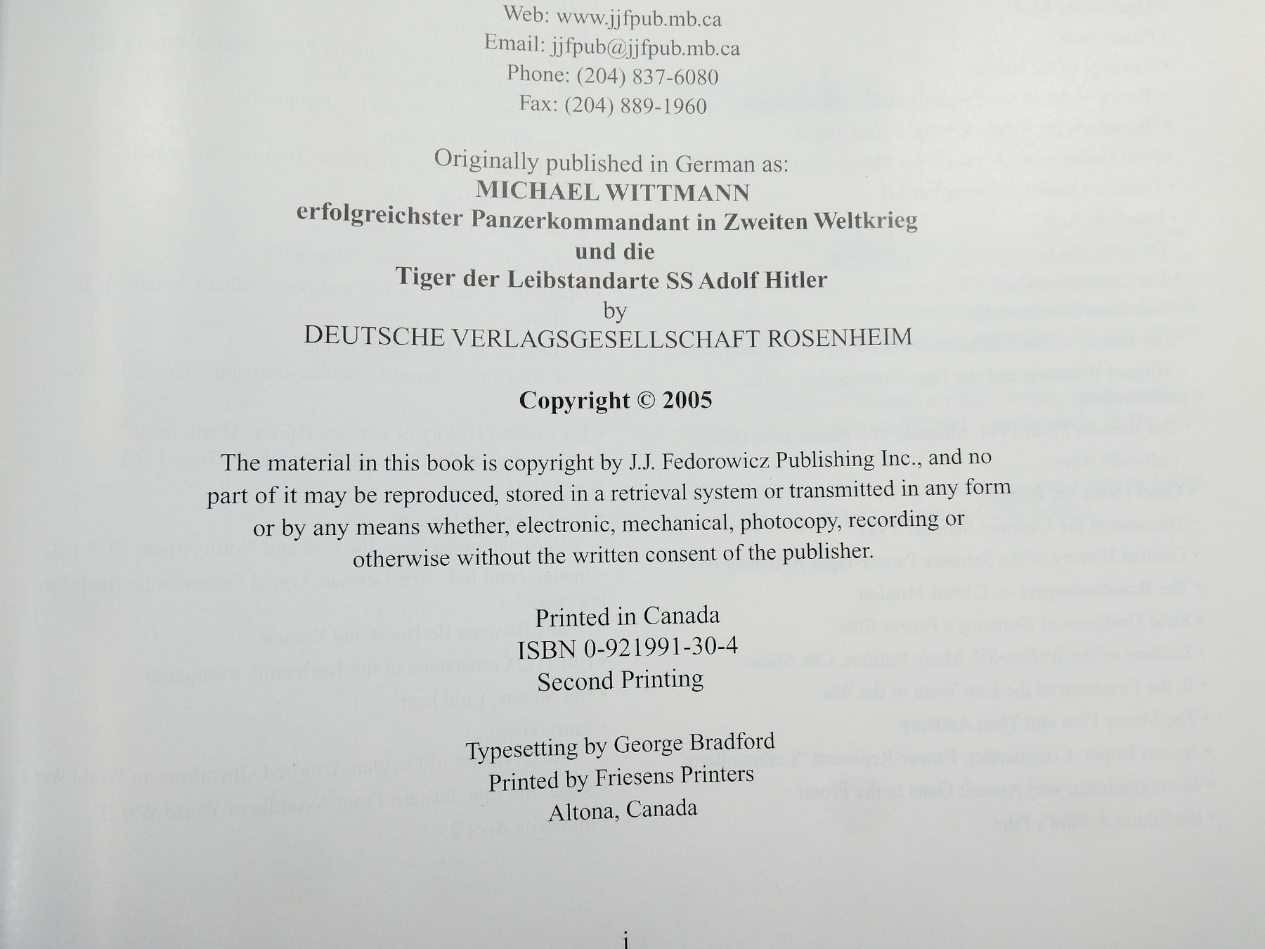 "MICHAEL WITTMANN AND THE TIGER COMMANDERS OF THE LEIBSTANDARTE" BOOK