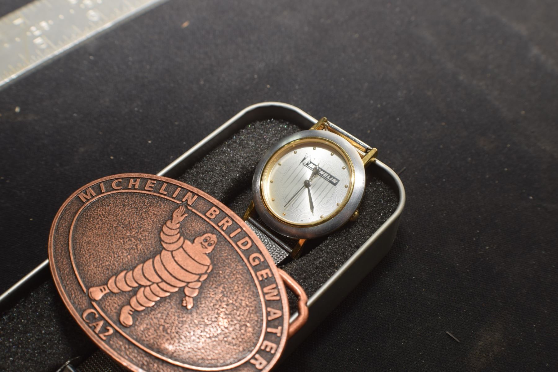MICHELIN TIRES ADVERTISING BELT BUCKLE AND WATCH