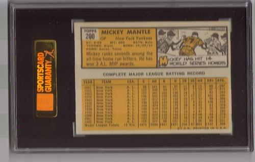 MICKEY MANTLE 1963 TOPPS BASEBALL CARD. #200. Graded by SGC. 60. EX 5. 8149861-006.