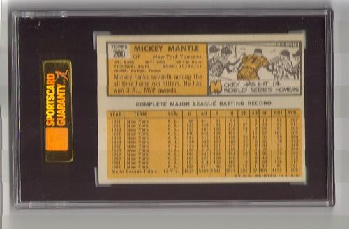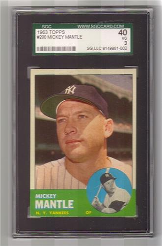 MICKEY MANTLE 1963 TOPPS BASEBALL CARD. #200. Graded by SGC. 40. VG 3. 8149861-002.