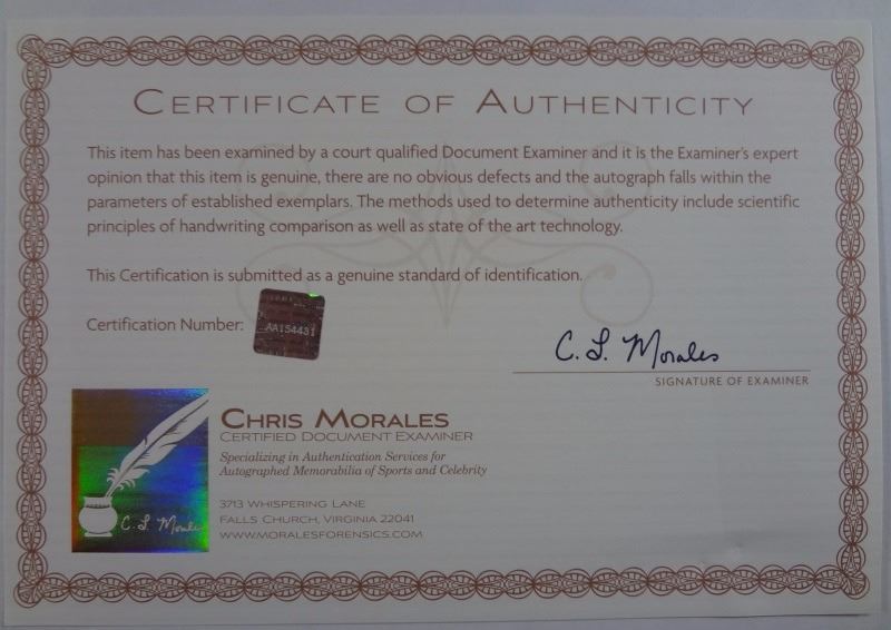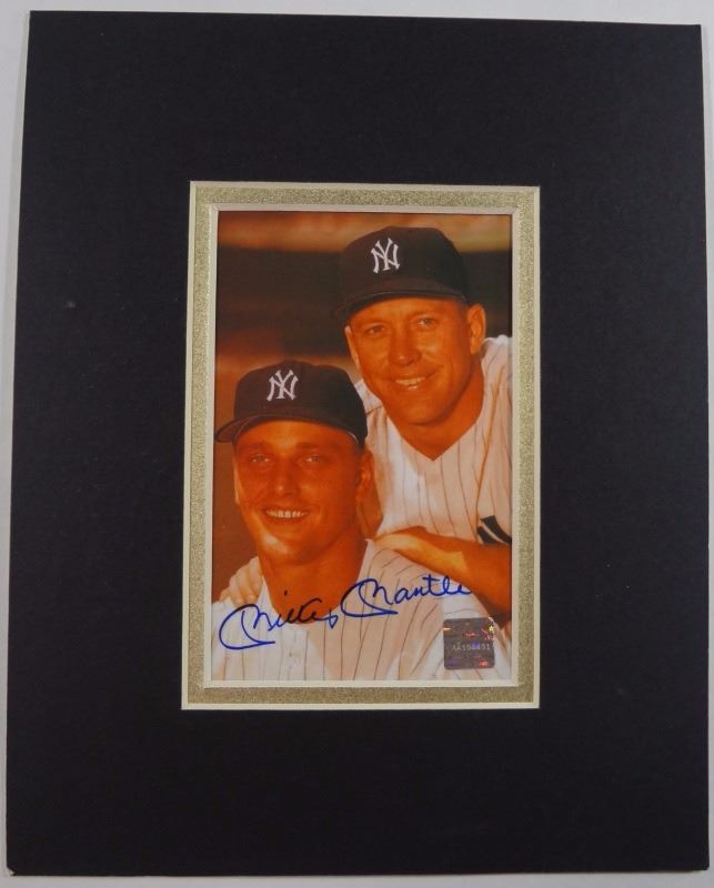 MICKEY MANTLE AUTOGRAPHED 4x6 PHOTO / MATTED, COA by MORALES
