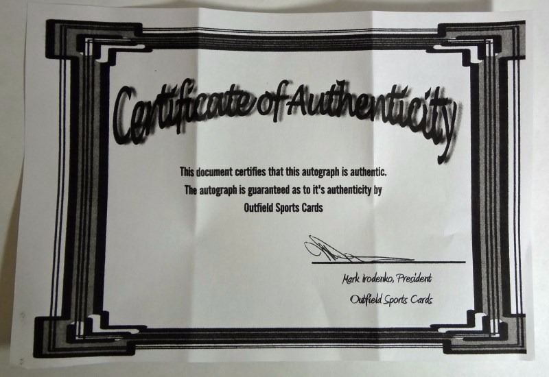 Bid with confidence at Silver Towne Auctions. ESTIMATE $150-$180 COA by OUTFIELD SPORTS CARDS