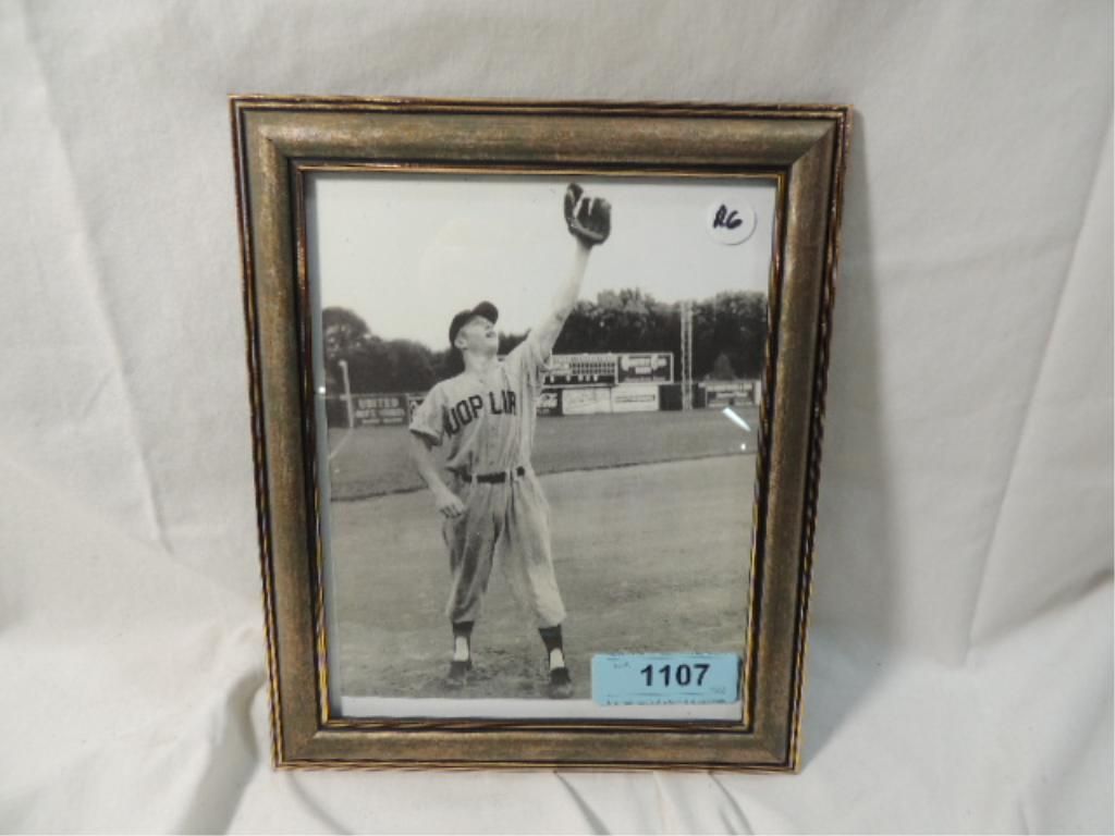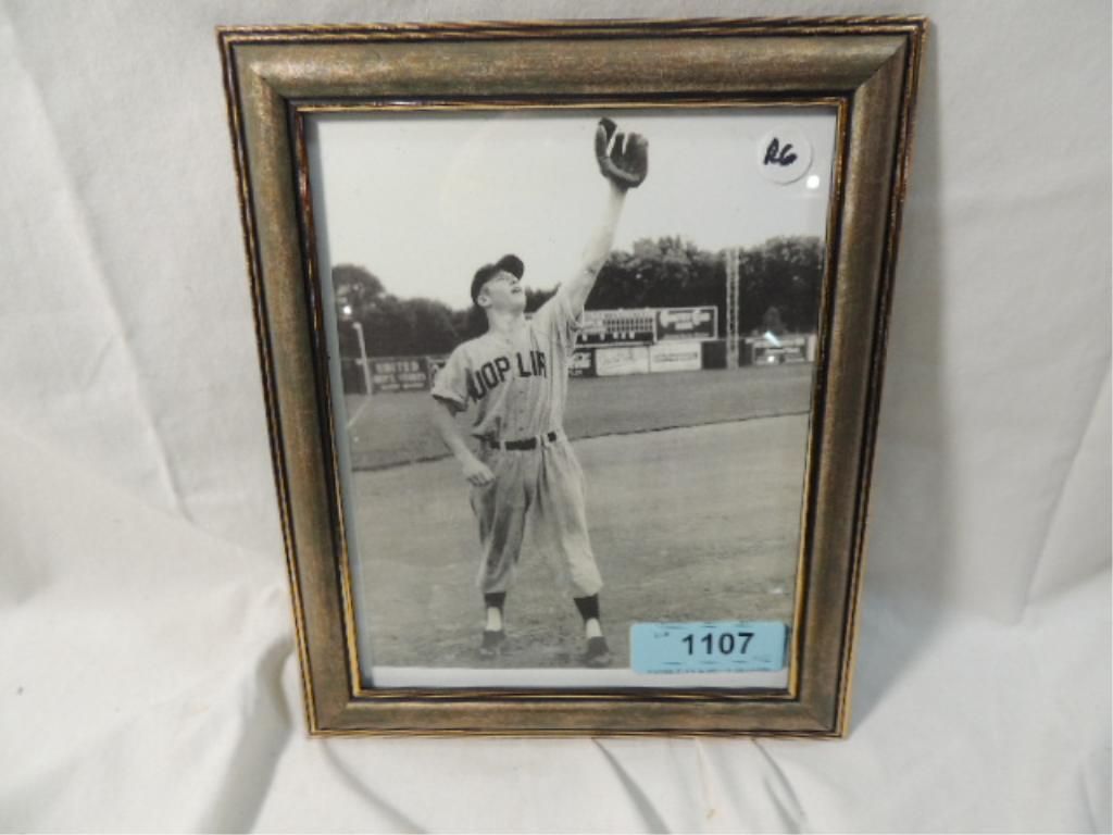 NICE FRAMED PHOTO 8X10 HALL OF FAMER MICKEY MANTLE WAS A SHORTSTOP FOR THE JOPLIN MINOR LEAGUE BASEBALL TEAM IN 1950. AS SHOWN. SEE PHOTO FOR MORE DETAILS.