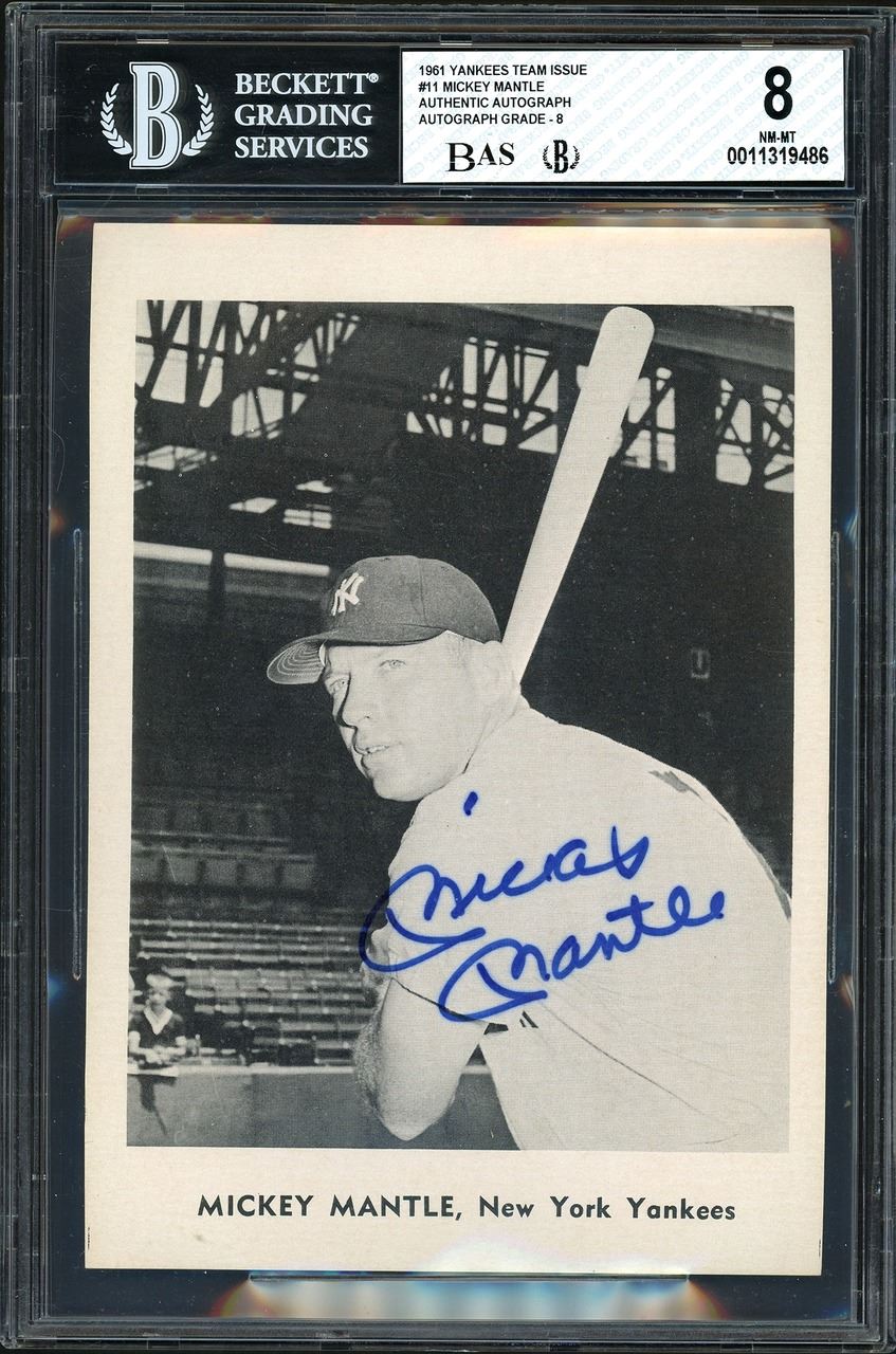 MICKEY MANTLE SIGNED 1961 TEAM ISSUED 5X7 PHOTO (BGS 8 AUTO)
