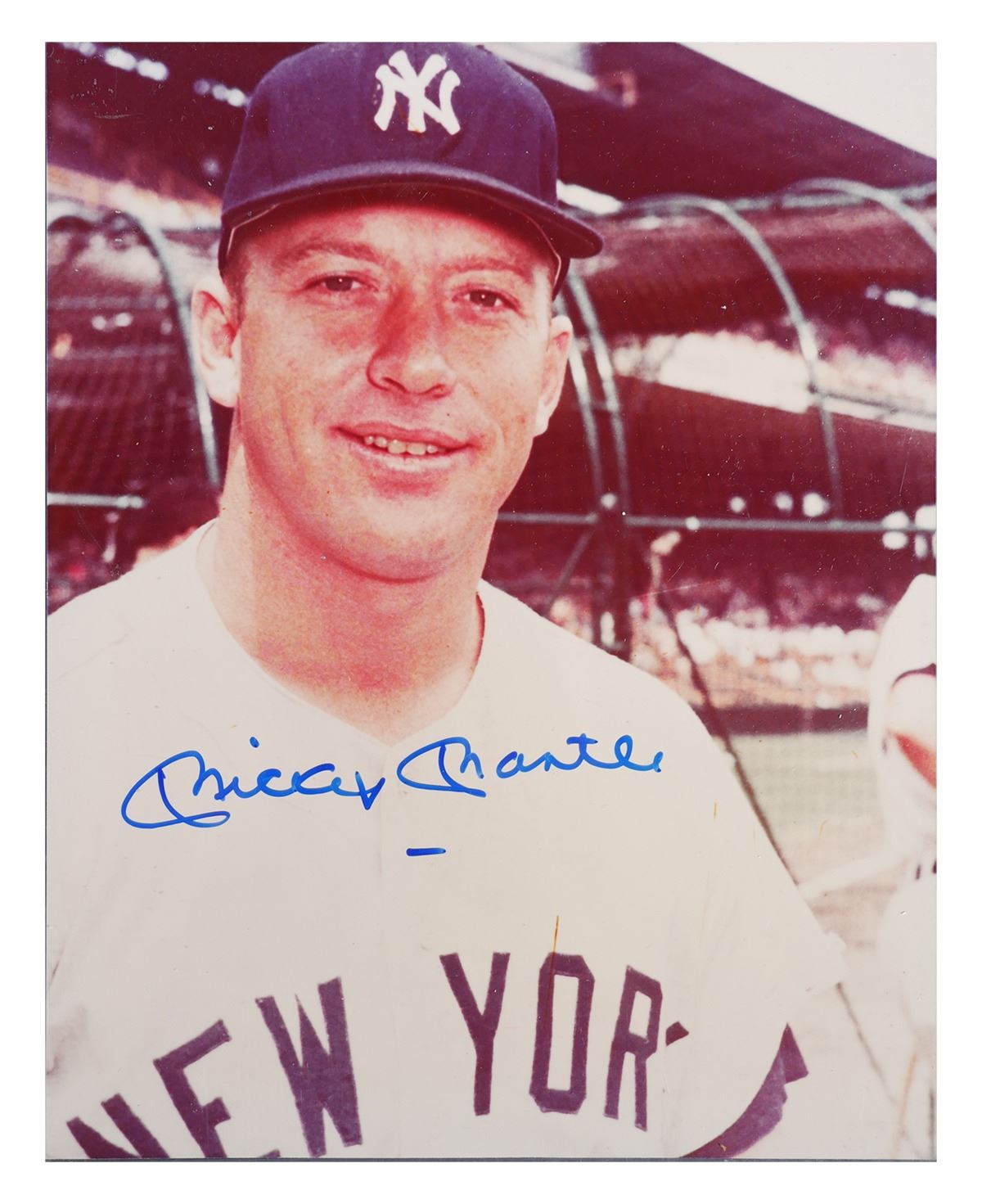 8x10 color photo of HOFer Mickey Mantle, signed in blue marker. Comes with directly acquired letter of authenticity from James Spence Authentication. (Blackwell Auctions obtained the authentication.)