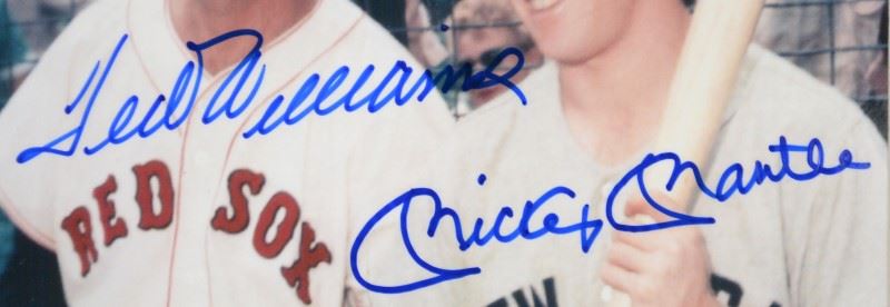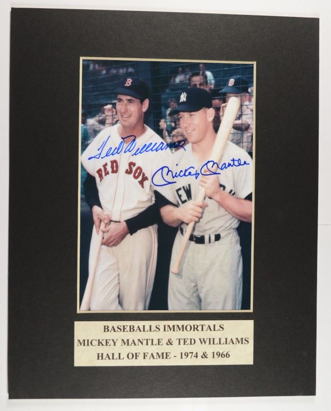 IN 8 X 10 MATTE. "BASEBALL IMMORTALS MICKEY MANTLE & TED WILLIAMS HALL OF FAME - 1974 &1966" NO COA. EST 90.00-100.00