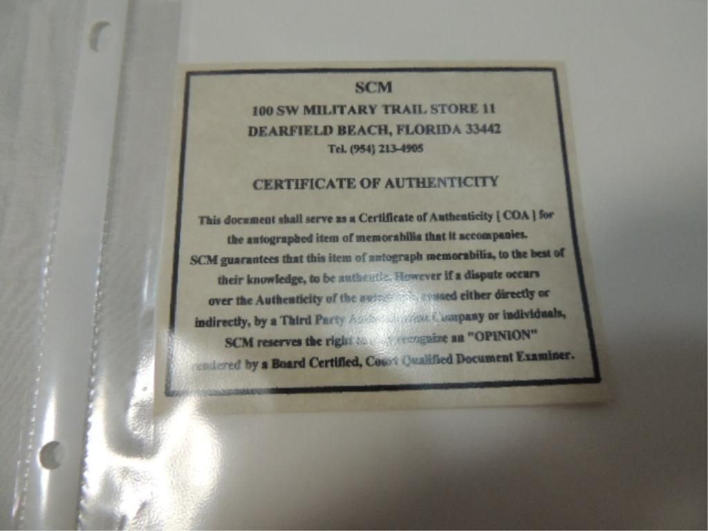 "AS IS, WHERE IS" WITHOUT ANY GUARANTEES. THERE WILL BE NO REFUNDS ON AUTOGRAPHS OR SIGNATURES, AND WE WILL NOT TAKE ANY RESPONSIBILITY FOR WHETHER OR NOT ANY AUTOGRAPH, OR SIGNATURE IS AUTHENTIC. THIS APPLIES TO ALL AUTOGRAPHS, OR SIGNATURES OFFERED IN THIS OR ANY FUTURE AUCTION.