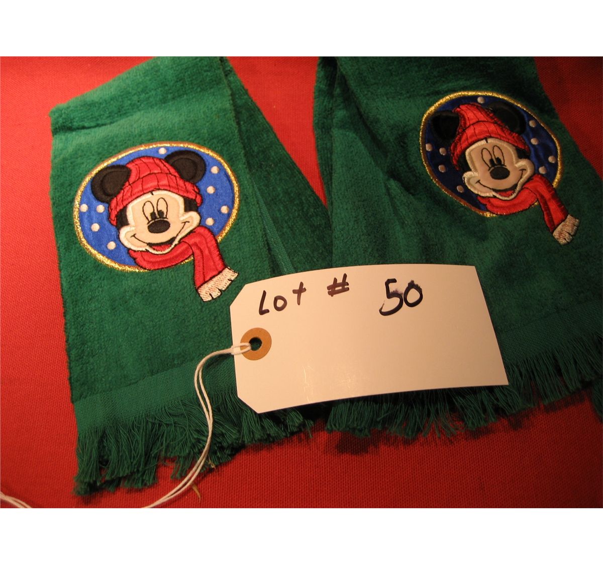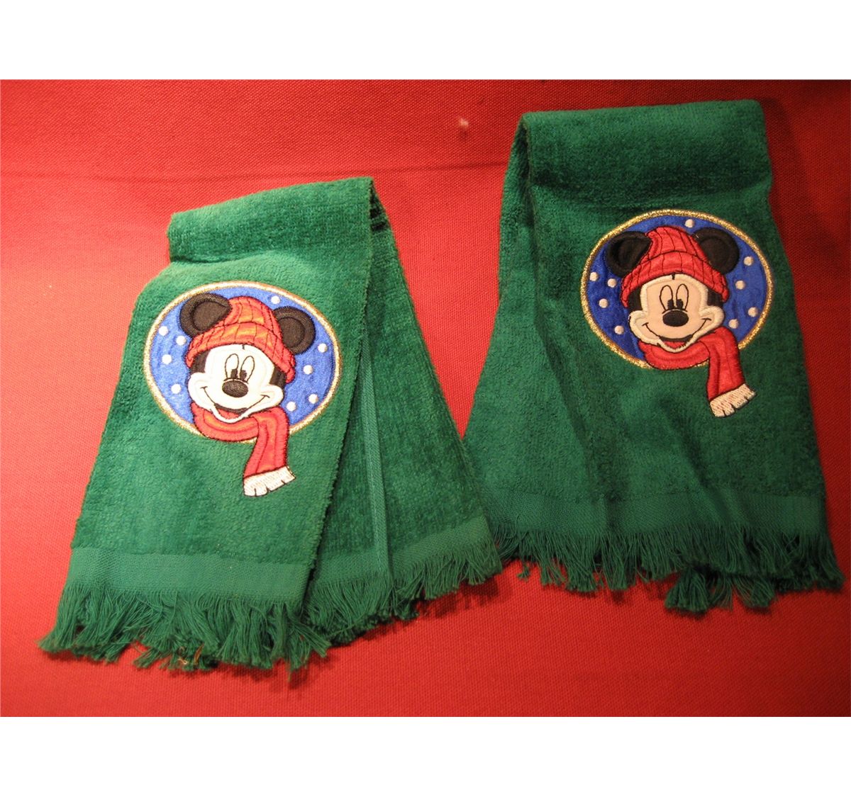 (2) MICKEY MOUSE GREEN CHRISTMAS DECORTIVE HAND TOWELS