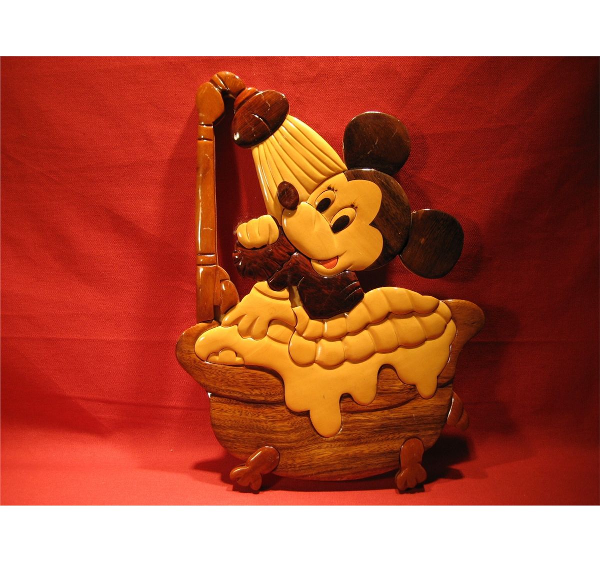 (1) MICKEY MOUSE WOODEN WALL HANGER "MICKY IN THE BATH" GREAT CRAFTMENSHIP