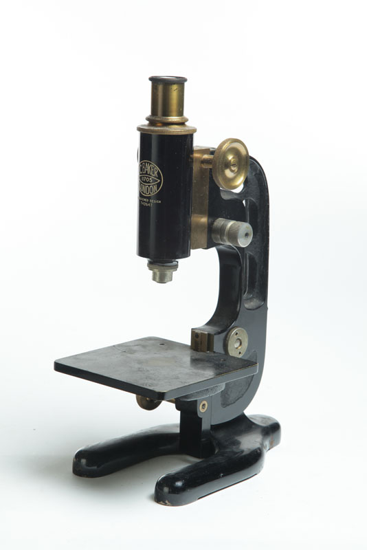 England, early 20th century. C. Baker, London, monocular microscope, marked 11705 and 742647, imperfections.12"h.