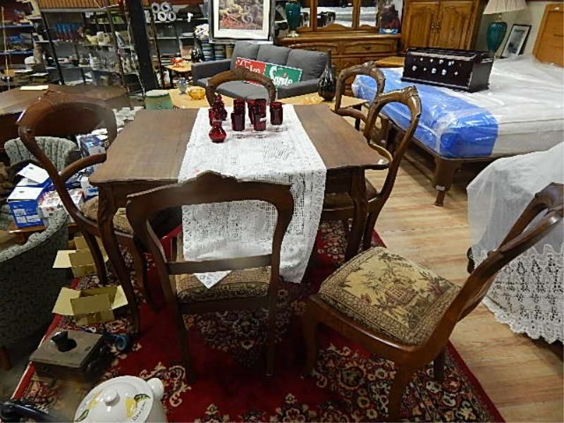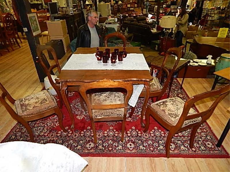 MID 1800'S DINING TABLE & 6 CHAIRS - CARVED LEGS