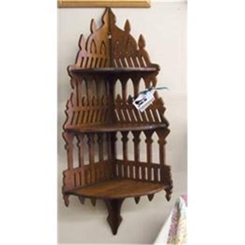 <tr><td>Title:MID 1800s HAND PLANNED WOOD THREE SHELF CORNER</td></tr>