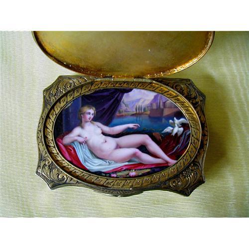 <tr><td>Title:MID-19TH C. EUROPEAN "EROTIC" SILVER/ENAMEL </td></tr>