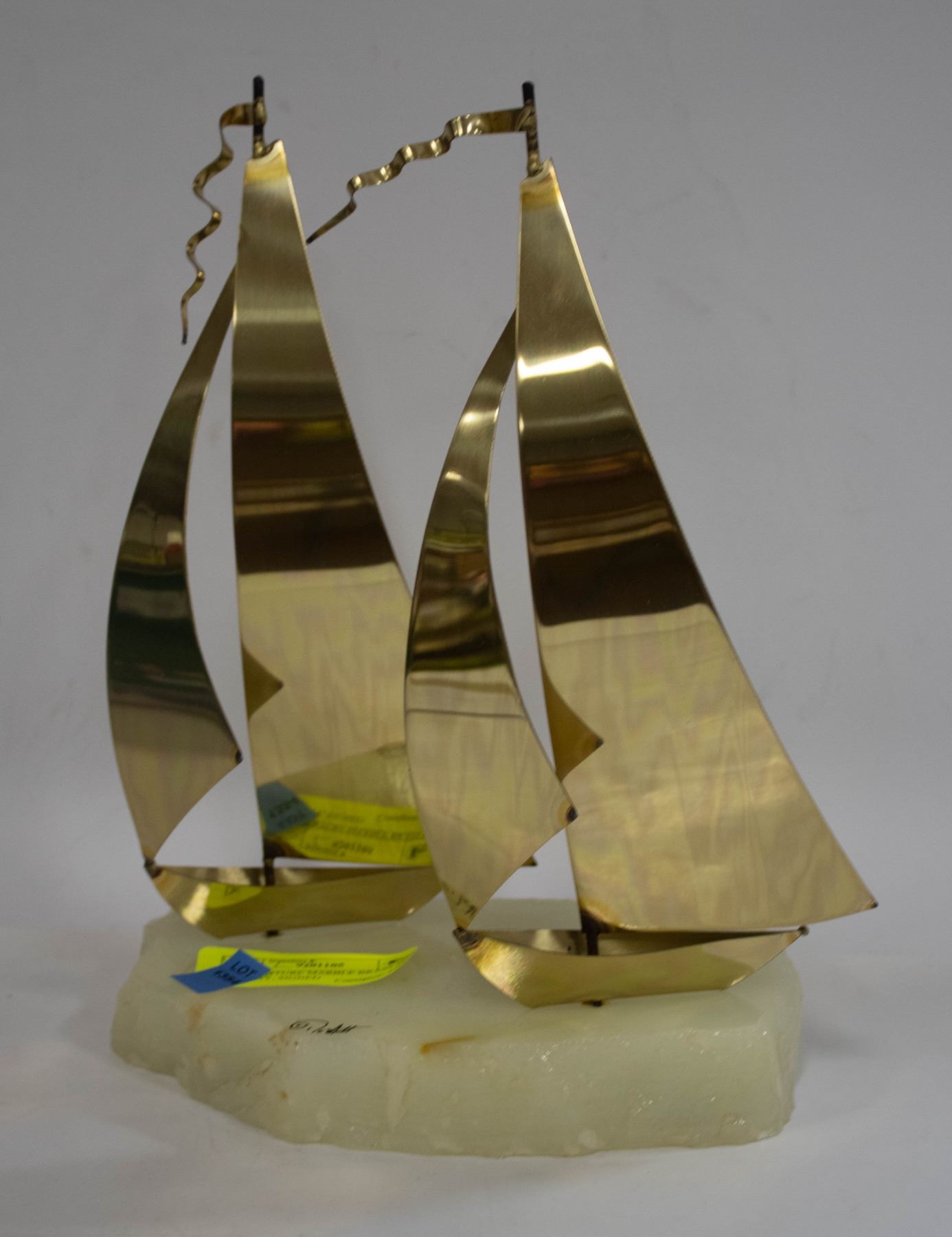 MID-CENTURE MARBLE BRASS SHIP DISPLAY, SIGNED