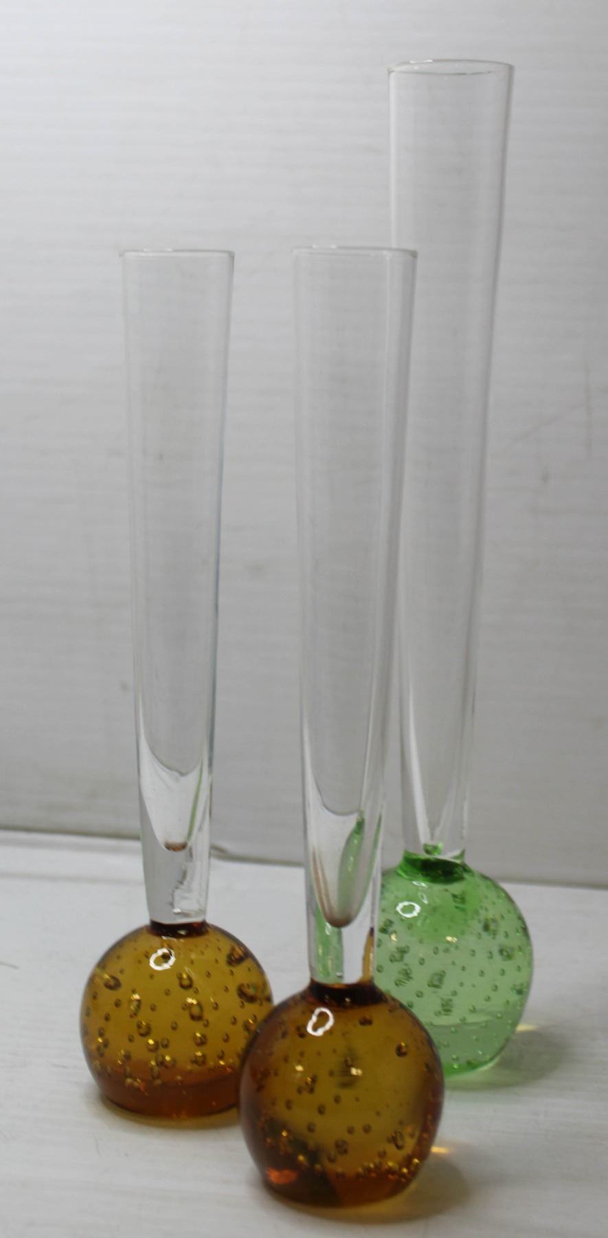 MID CENTURY BUBBLE GLASS VASES- SET OF 3