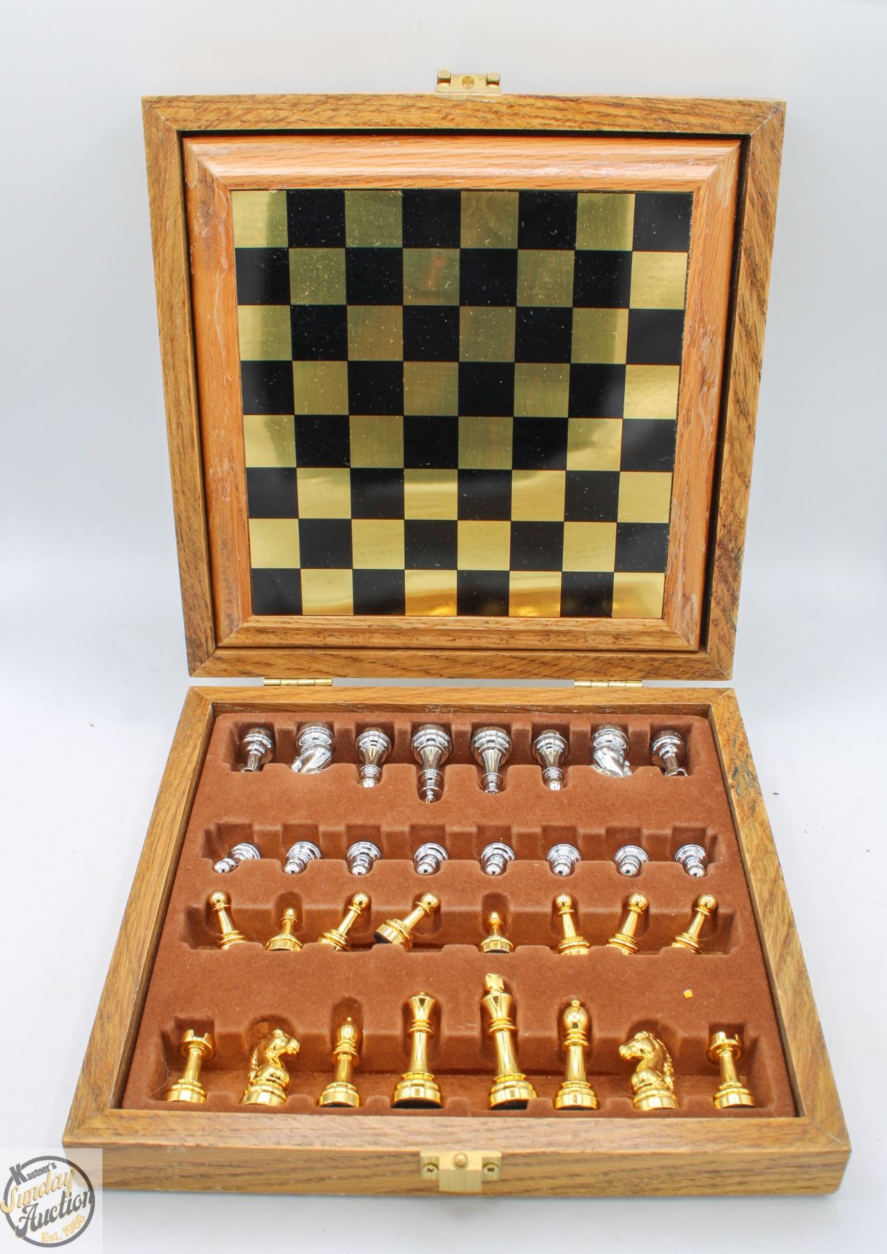 MID CENTURY CHESS SET W/ METAL GAME PIECES