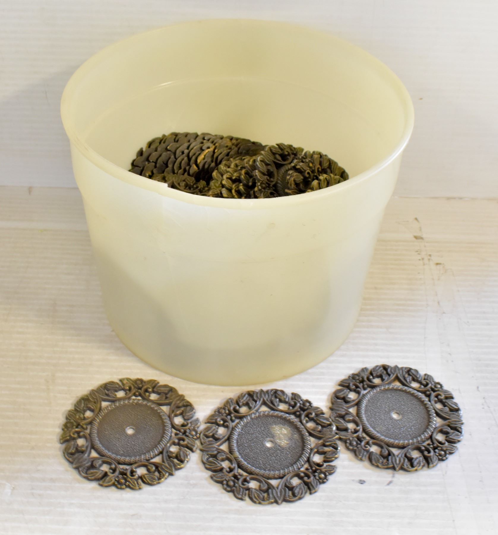 FORMALLY IN THE CANTERBURY INN EDMONTON,75 EACH OF DIE CAST ROSETTES WITH PATINA FINISH AND CENTRE SCREW MOUNT, 3.5 DIAMETER AND FLORAL DESIGN