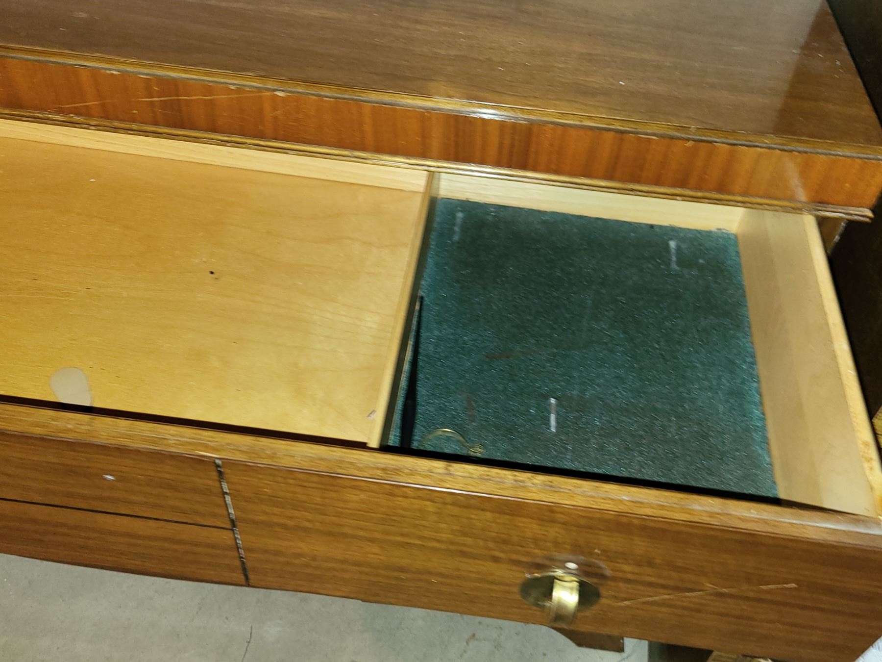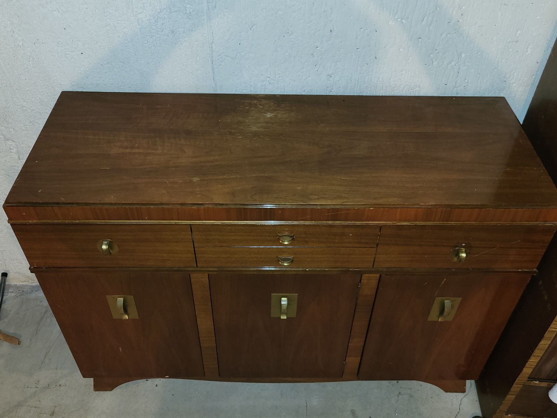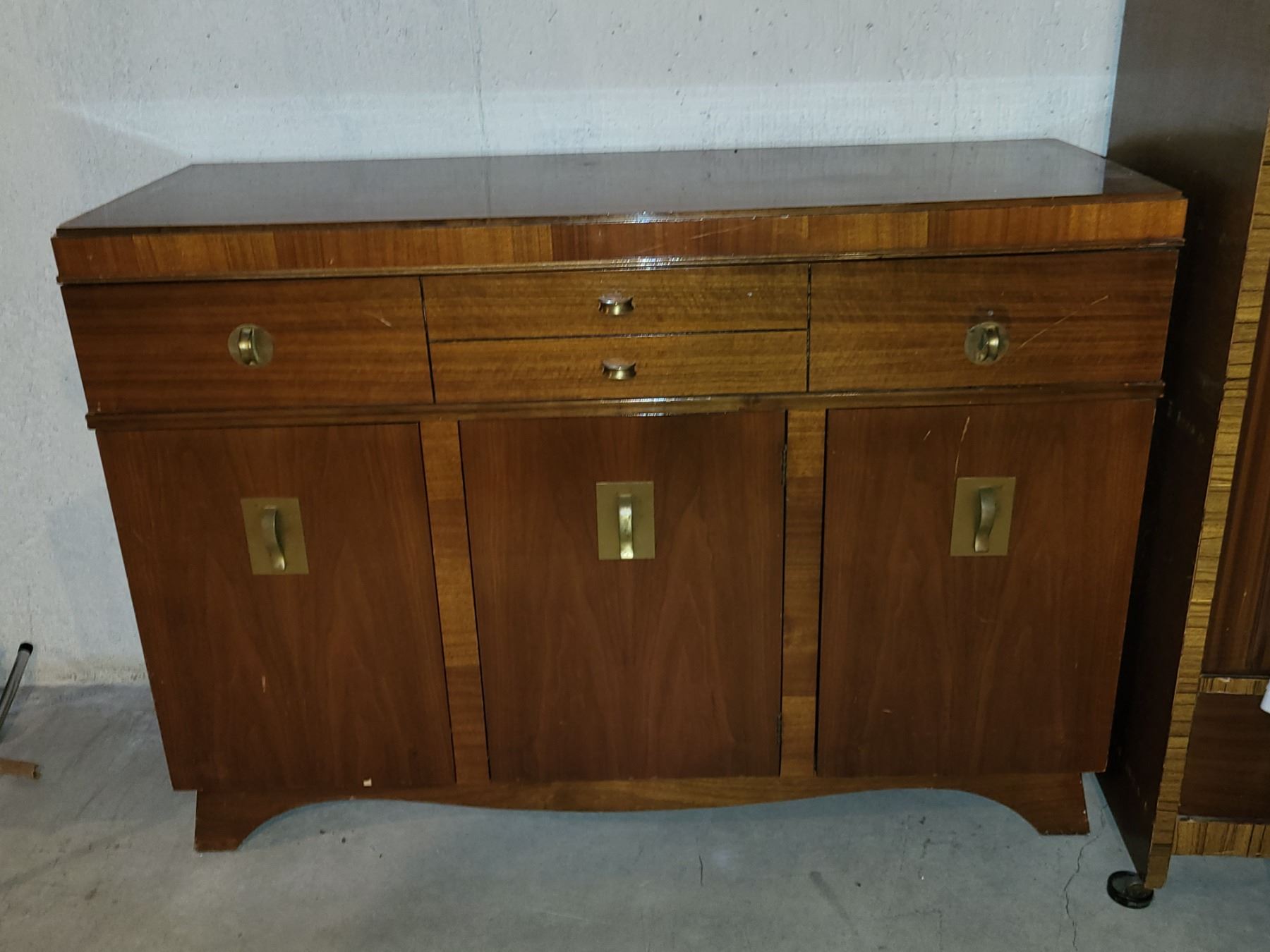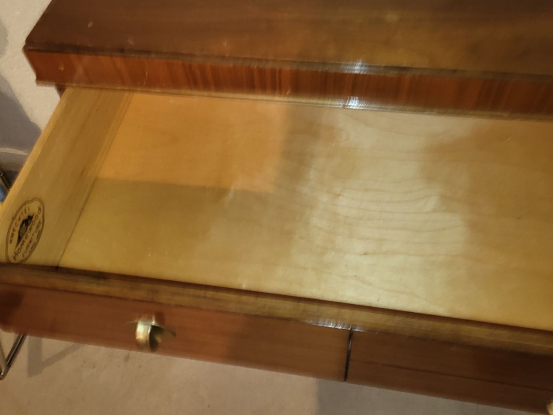 MID CENTURY KNECHTEL HOMEWOOD BUFFET SIDETABLE. MEASURES 48" X 17.5" X 34". SOME MINOR DAMAGE. SEE PICTURES