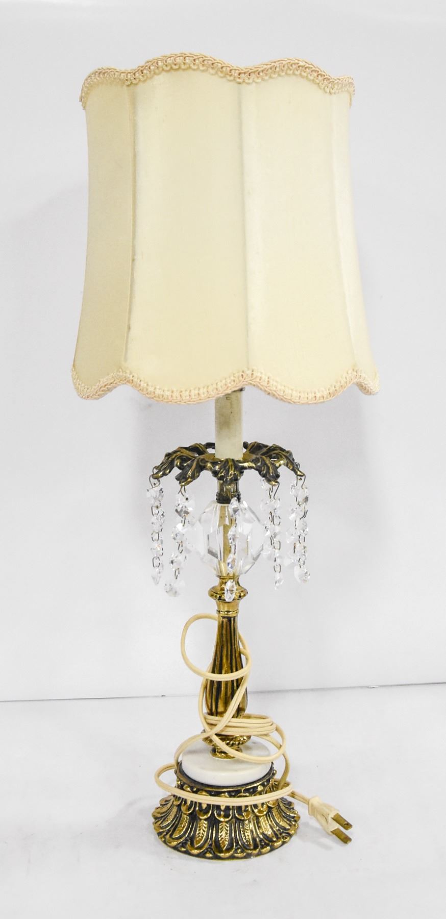 MID CENTURY LAMP WITH MARBLE TOP AND CRYSTALS