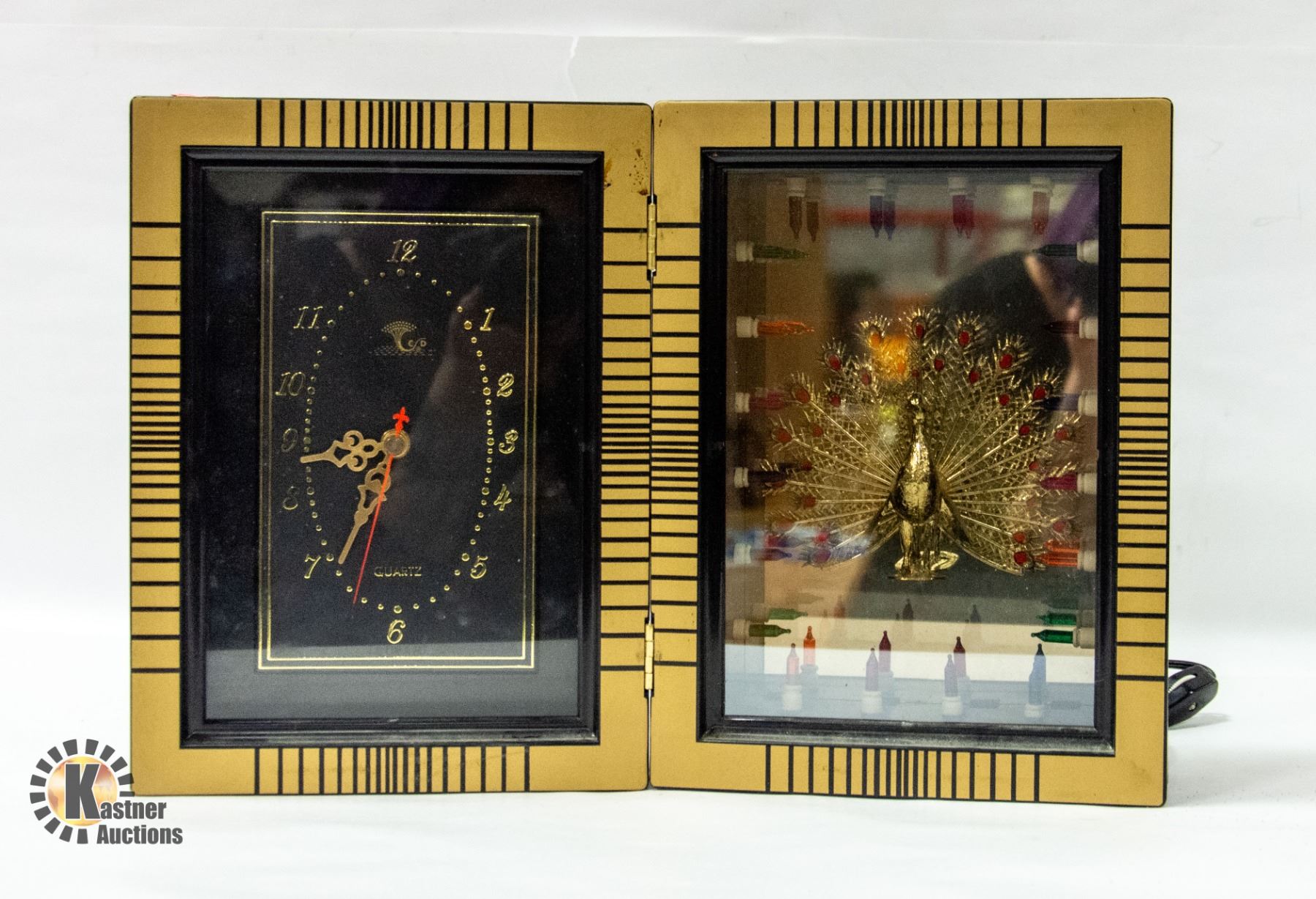 MID-CENTURY LIGHT UP PEACOCK DISPLAY & CLOCK