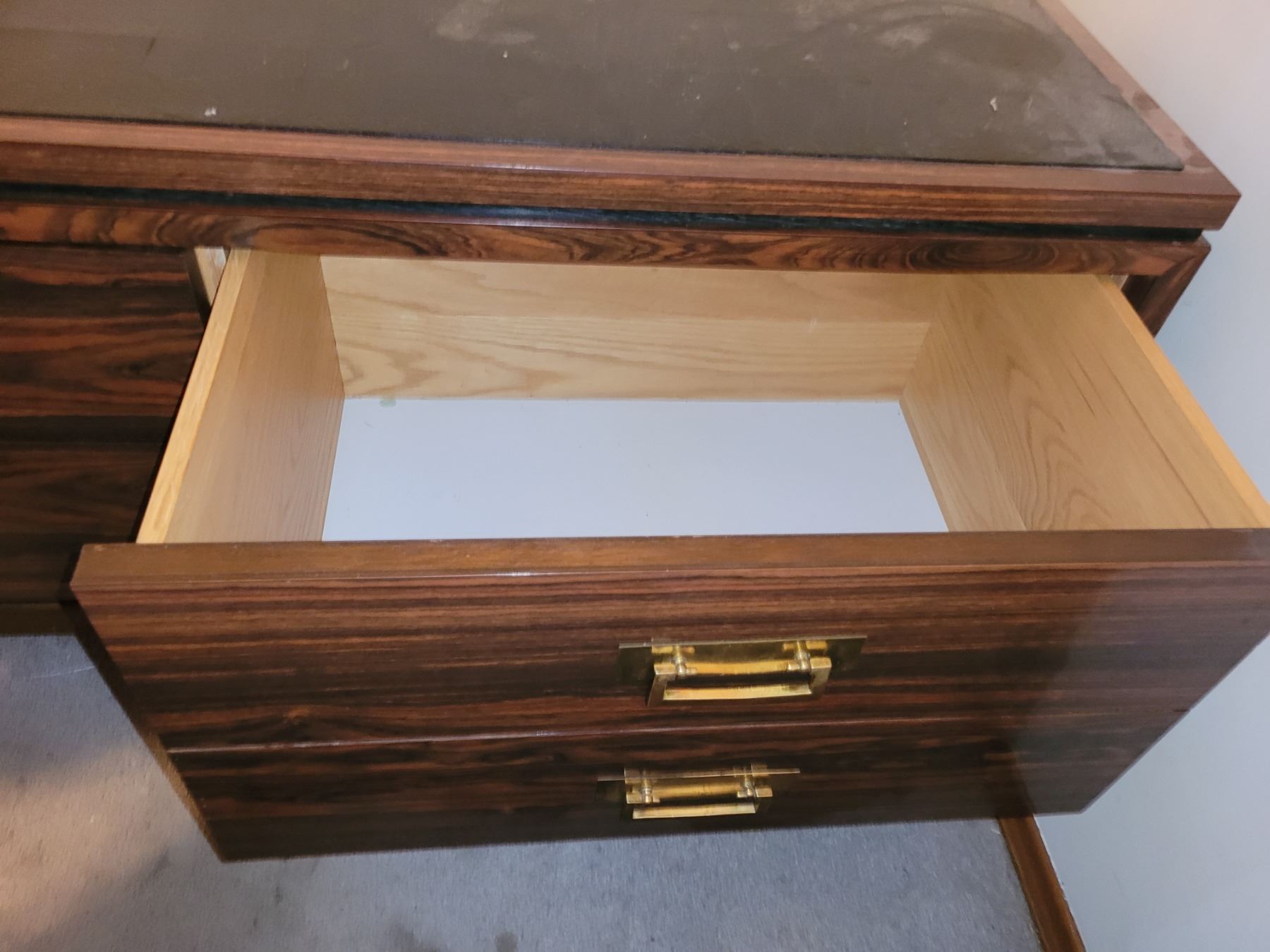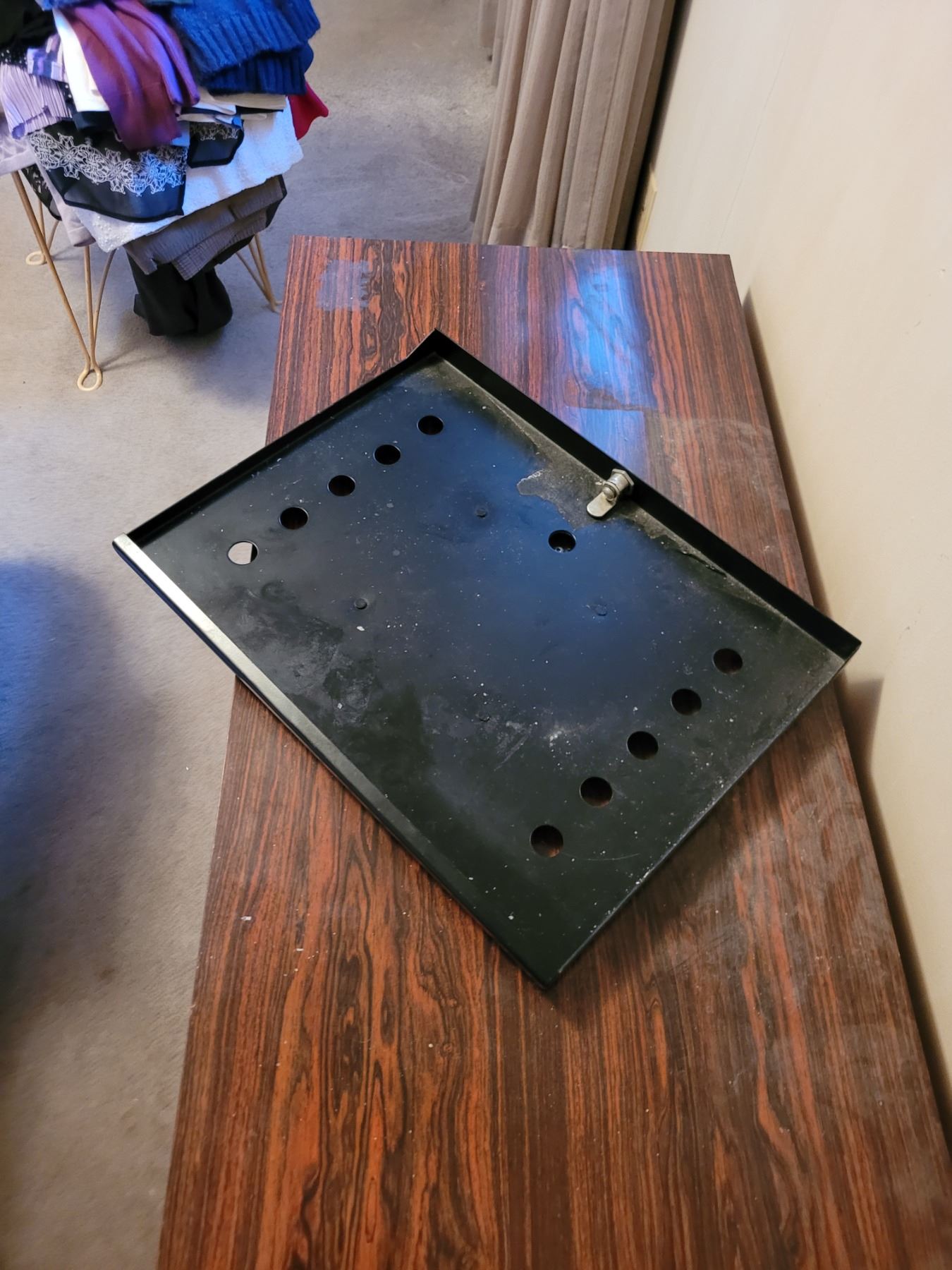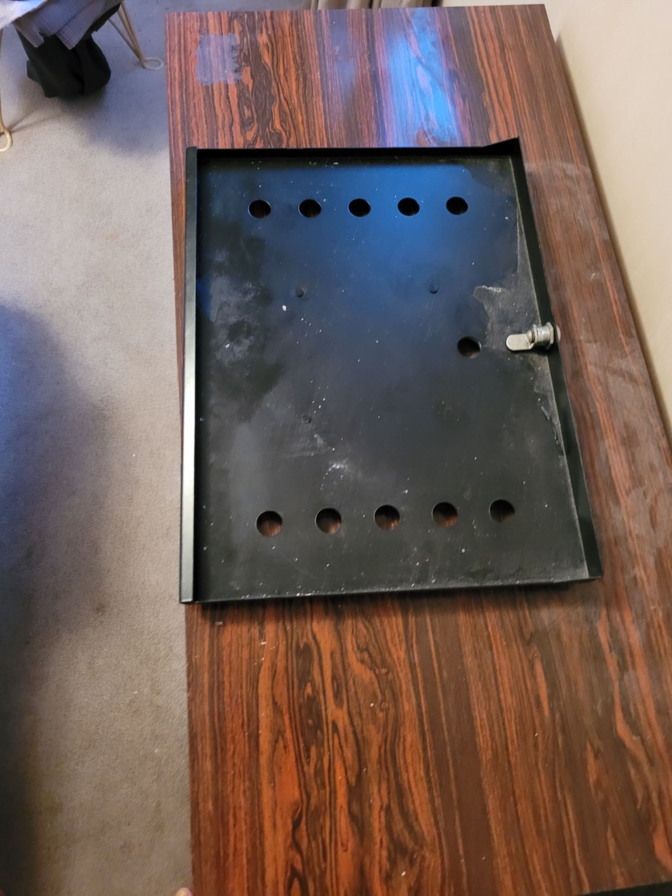 VERY UNIQUE, HAS BLACK MATTE ON THE TOP AND A SWIVEL FOR A TV. MEASURES: 72" X 24.5" X 18" SEE PICTURES