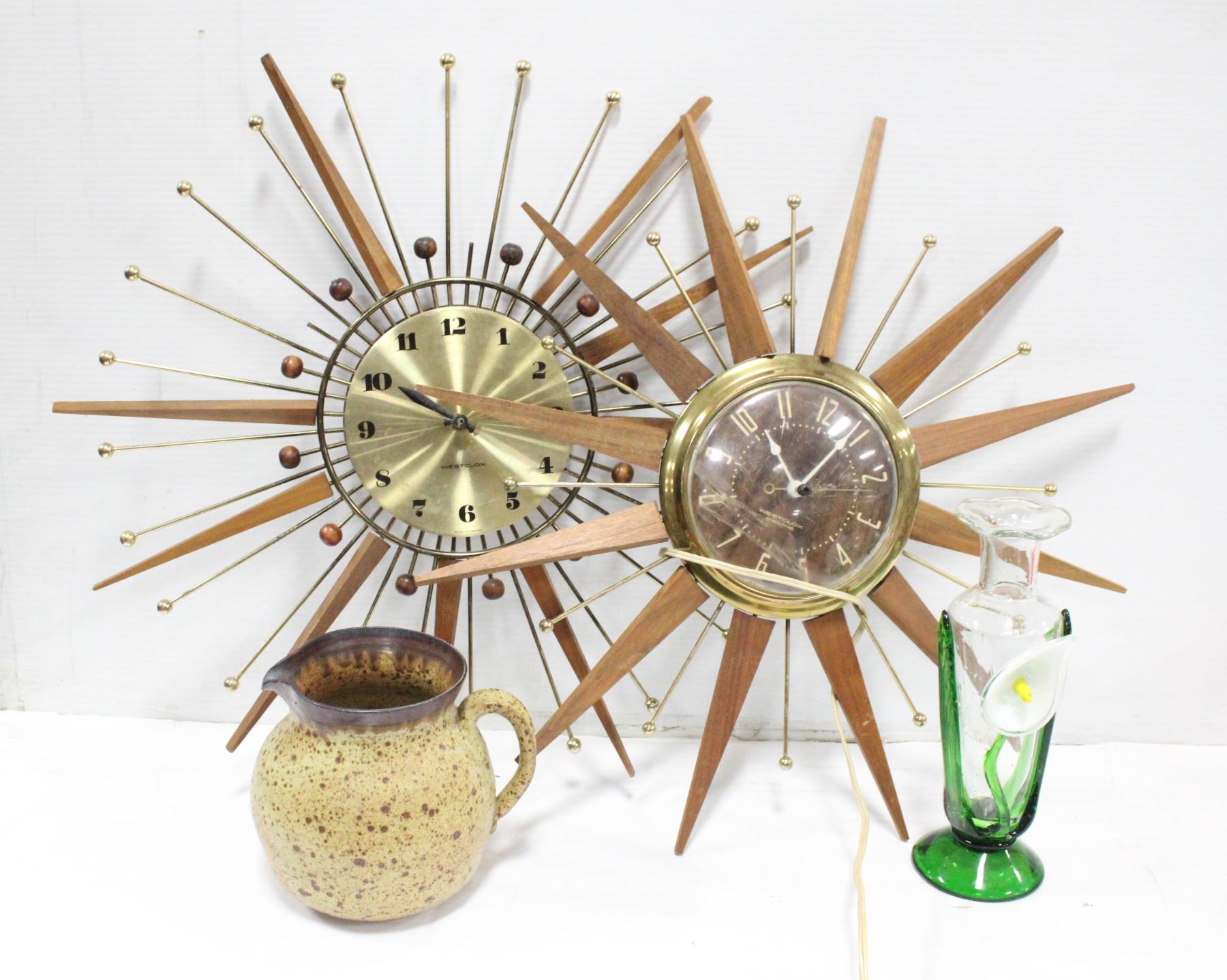 MID CENTURY LOT - 2 STARBURST CLOCKS, HAND BLOWN
