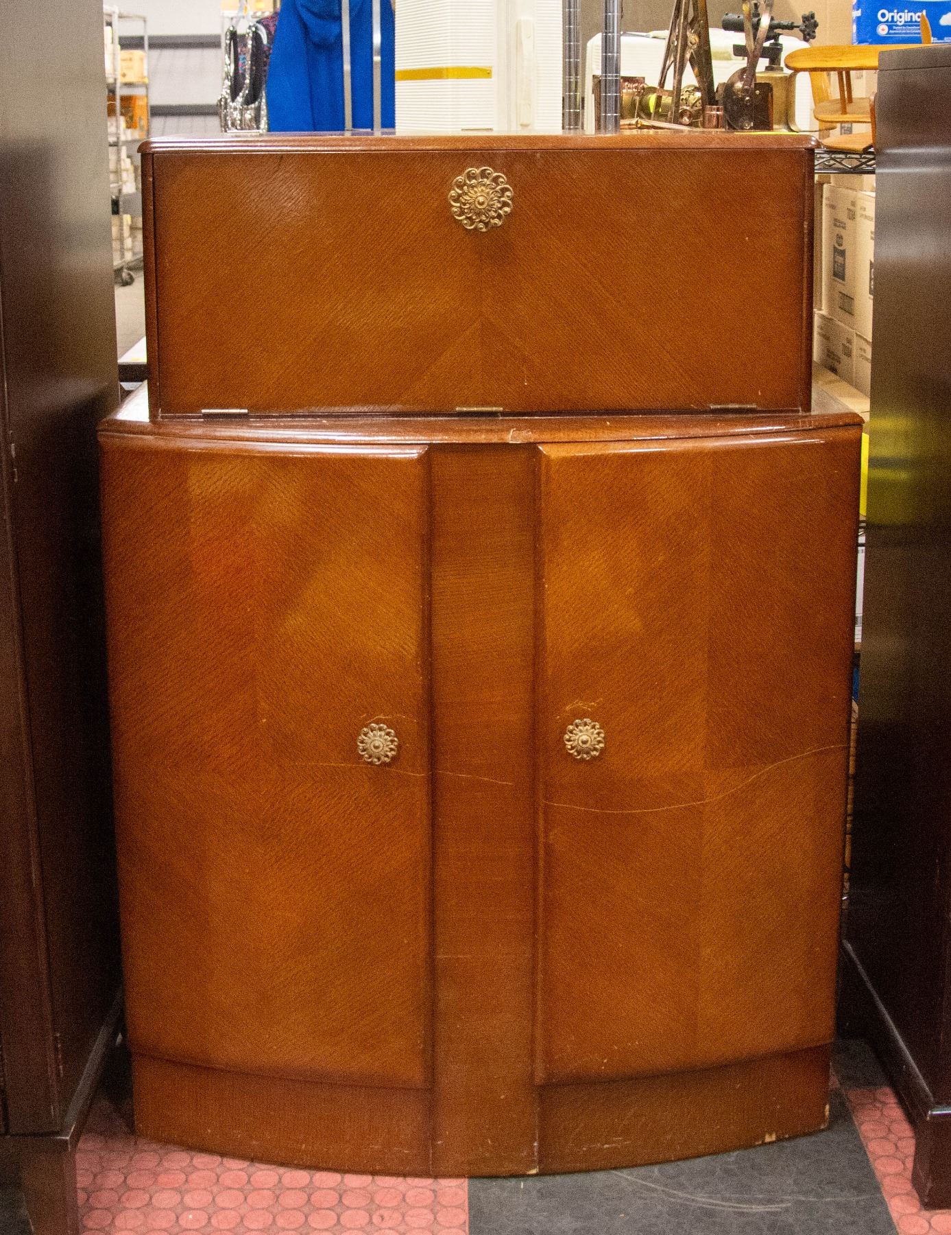 PLENTY OF STORAGE, WITH ORIGINAL GLASS, FRUIT SQUEEZER. HAS A FEW MINOR MARKS. 34" X 16" X 49" **ALL ITEMS MUST BE REMOVED BY 5PM SATURDAY, SEPTEMBER 28TH 2024. ALL REMAINING ITEMS WILL BE SUBJECT TO A $6.00 PER DAY STORAGE CHARGE. ANY ITEMS REMAINING AFTER MONDAY, OCTOBER 14TH 2024 WILL BE CONSIDERED FORFEITED. NO REFUNDS WILL BE ISSUED FOR FORFEITED ITEMS. TO SCHEDULE A PICK UP APPOINTMENT CLICK HERE