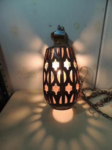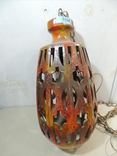 MID-CENTURY MODERN CERAMIC HANGING CEILING LIGHT. 22"L. AS SHOWN. VIEW PICTURE FOR DETAIL.