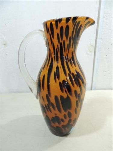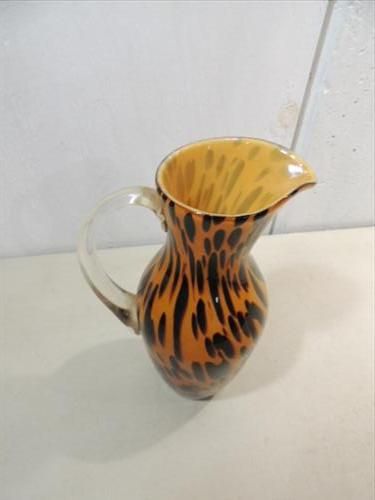 MID-CENTURY MODERN TORTOISE GLASS STYLIZED PITCHER. AS SHOWN. VIEW PICTURE FOR DETAIL.