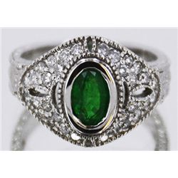 14kt White Gold 3.19 Approx grams including, .90ct Nat. Emerald Oval Deep Green, .13cttw Round Diamond G-H color VS-SI1, size 6