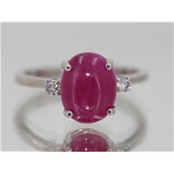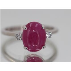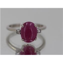 14kt White Gold 1.99 Approx grams, 2.84ct Cabochon Ruby Oval (no glass no lead) .08cttw Round Diamond, Appraisal Estimate $5000.00, Great Solitaire St