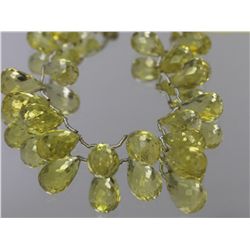 Natural 87.50cttw Lemon Cirtine Briolette 15mm to 11mm 18 Stones Drop Pear Shape, Holes Drilled can be worn AS IS or Restrung