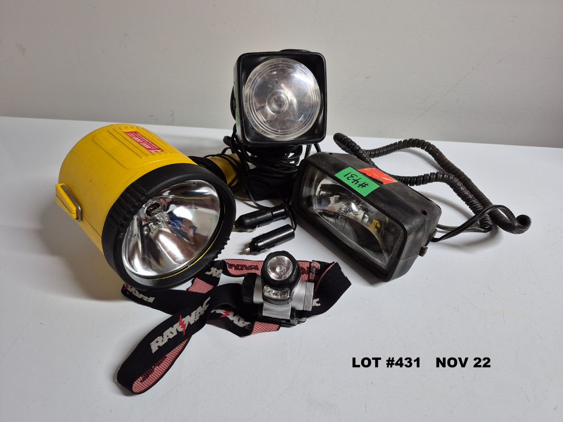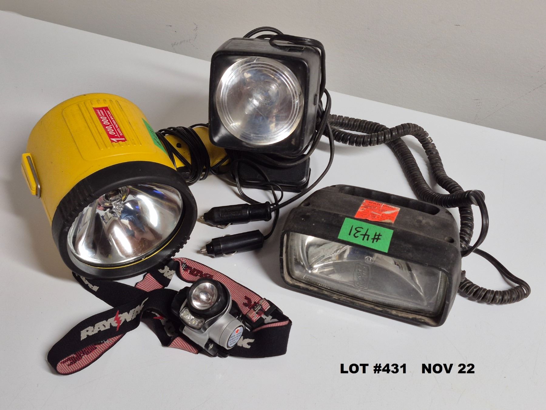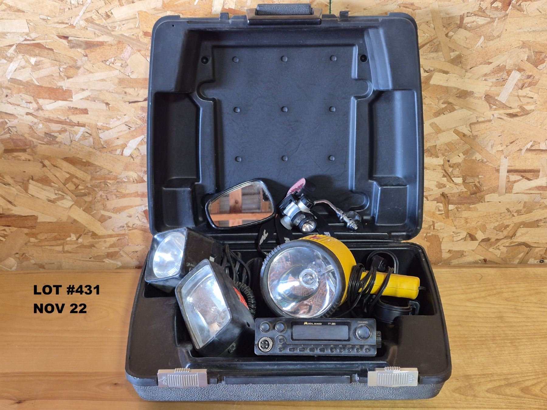 MIDLAND CB RADIO, WORKLIGHTS with 12 volt plug, RAYOVAC wearable worklight. Vinyl Black Carry Case