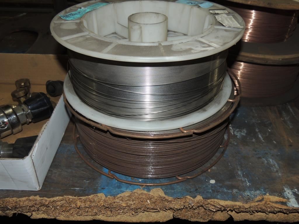 PREMIARC DW0308LP WELDING WIRE SPOOLS, WELDING WIRE, ALMOST FULL ROLL AND HALF ROOL, AS SHOWN SEE PHOTO FOR MORE DETAILS.