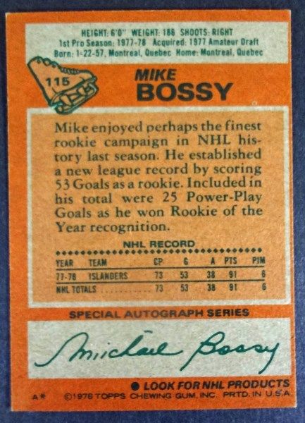 NICE CARD FROM 1978/79 TOPPS #115 MIKE BOSSY ROOKIE BOOK $60