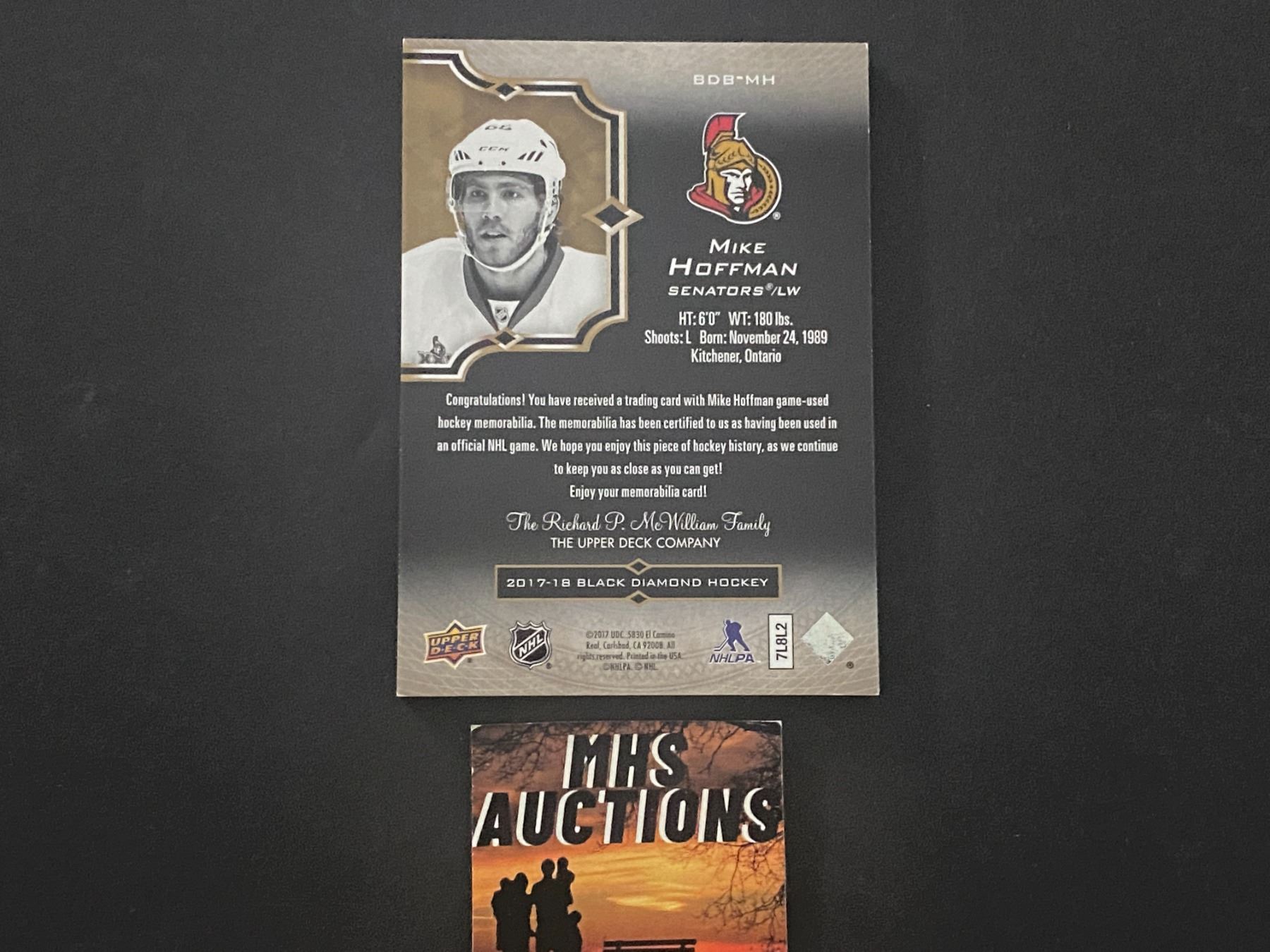 MIKE HOFFMAN 2017-18 BLACK DIAMOND PATCH HOCKEY CARD