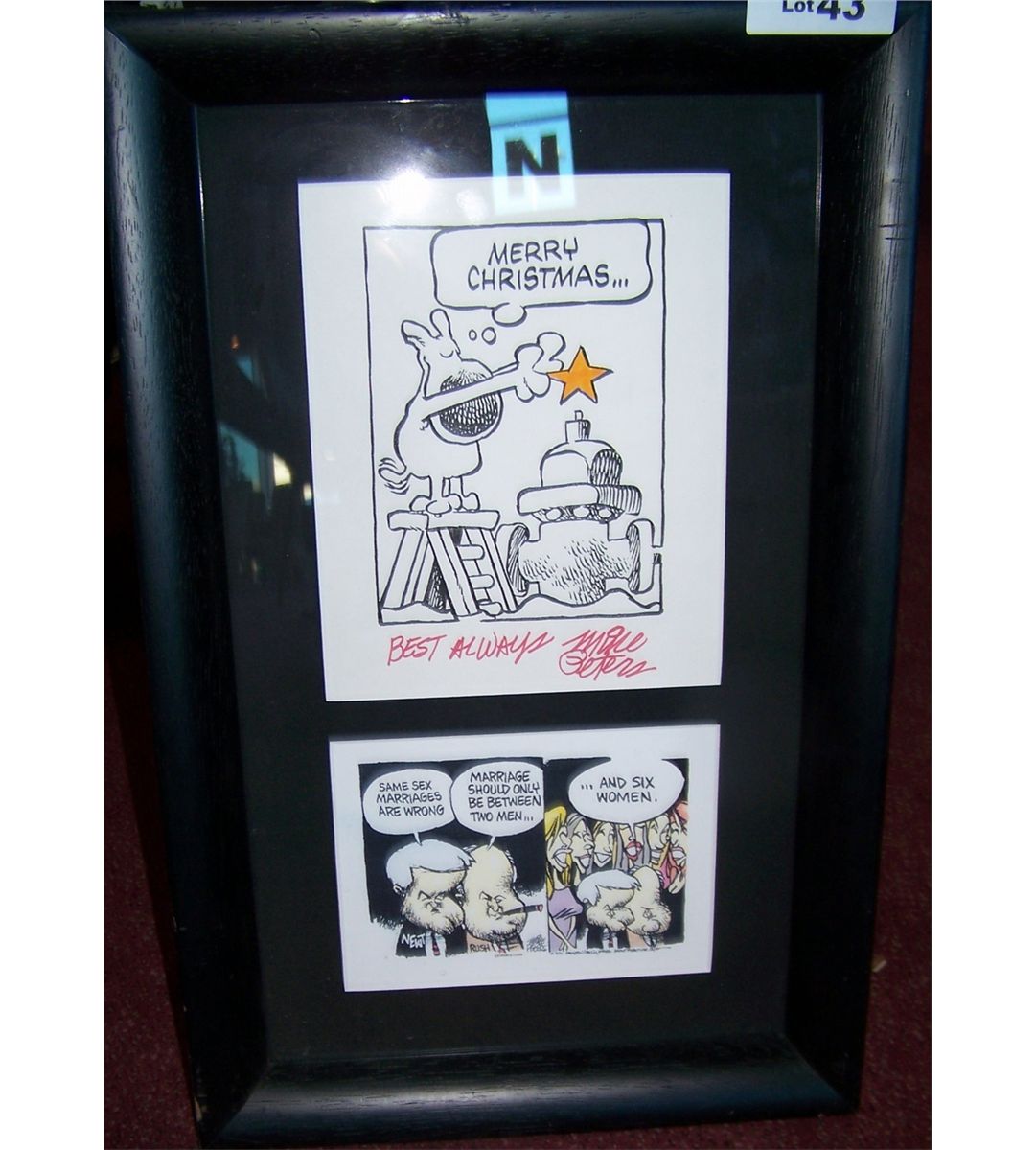 MIKE PETERS, CUSTOM FRAMED POLITICAL CARTOON, SIGNED RETAILS FOR $1,500